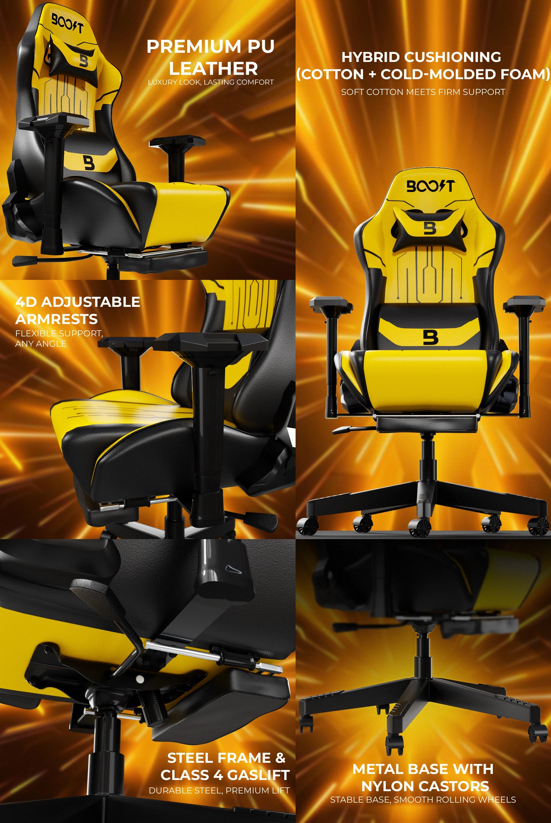 The back reclines from 90 to 135 degrees, allowing you to find a comfortable position for gaming or relaxing.